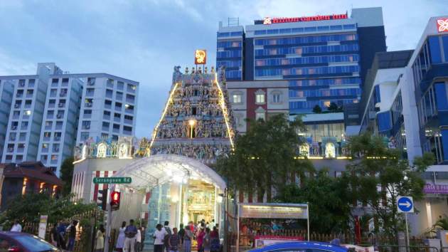 This guy prevented me from going in, though, even though they had areas to take off your shoes, and plenty of people did go in. He’s the first unfriendly Hindu temple attendant I’ve ever met, and also the only person I met in Singapore that did not speak any English – so the guy officially sucks ๐