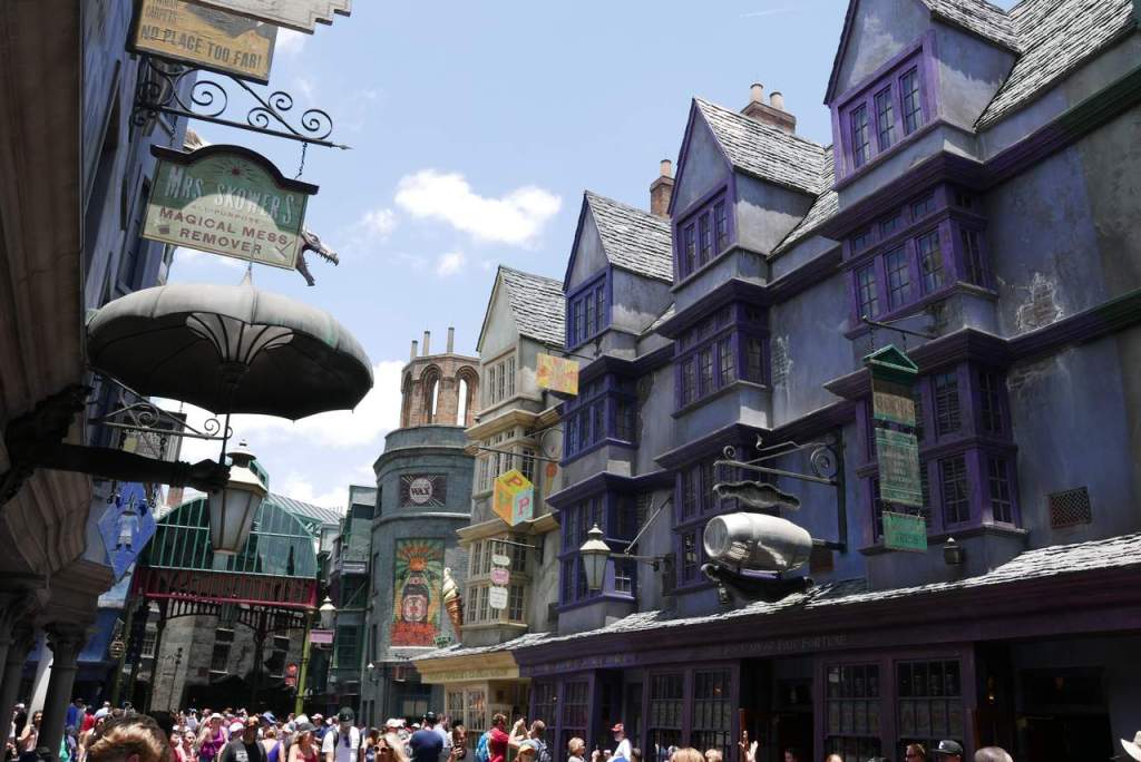 Unlike at disney world, all the shops are real, working shops – you can really get ice cream at Florian Fortescue’s , buy prank gifts at geh Weasley’s joke shop, and get butterbeer at the leaky cauldron.