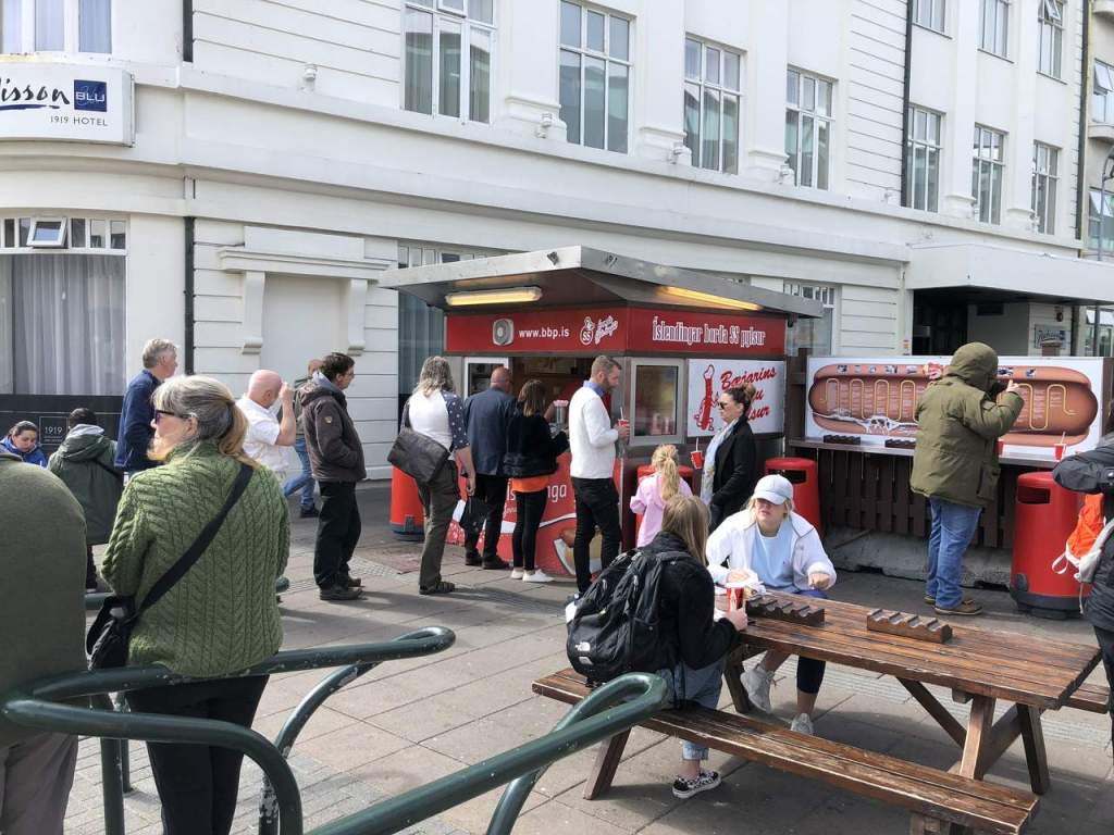 A, or rather the, famous hot dog stand at the harbour, where apparently all kinds of celebrities and visiting dignitaries have visited before. Well, the hot dogs are tasty, and cheap – unlike regular restaurants, where a completely normal meal in a completely normal, non-fancy restaurant might run 40 or 60 euros. I’m not sure if it’s the exchange rate, or the fact that most things are imported, or that iceland is a welfare state with high taxes and corresponding high wages – but pretty much everything is about 50% more expensive than expected. Guess I’ll be eating a lot of hot dogs.